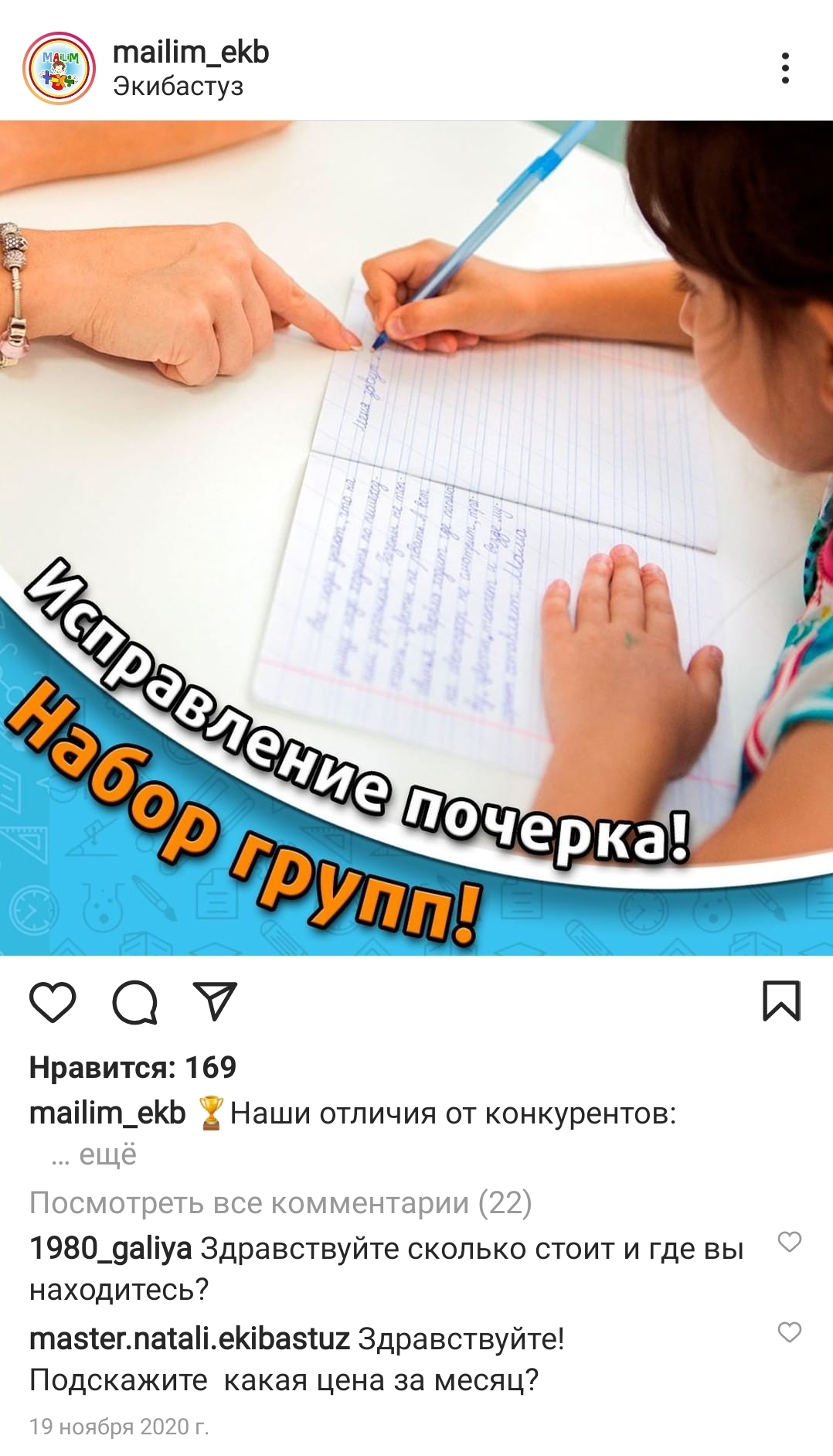 Занятие по исправлению почерка нельзя пропускать, каждое занятие это новая тема. Если ребенок пропускает занятие, с вашим ребенком педагогу придется провести индивидуальное занятие 45 минут. За индивидуальное занятие вам придется доплатить 1000 тенге.